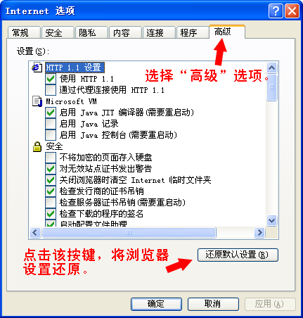 再將“高級”選項(xiàng)中設(shè)置也還原為“默認(rèn)級別”。